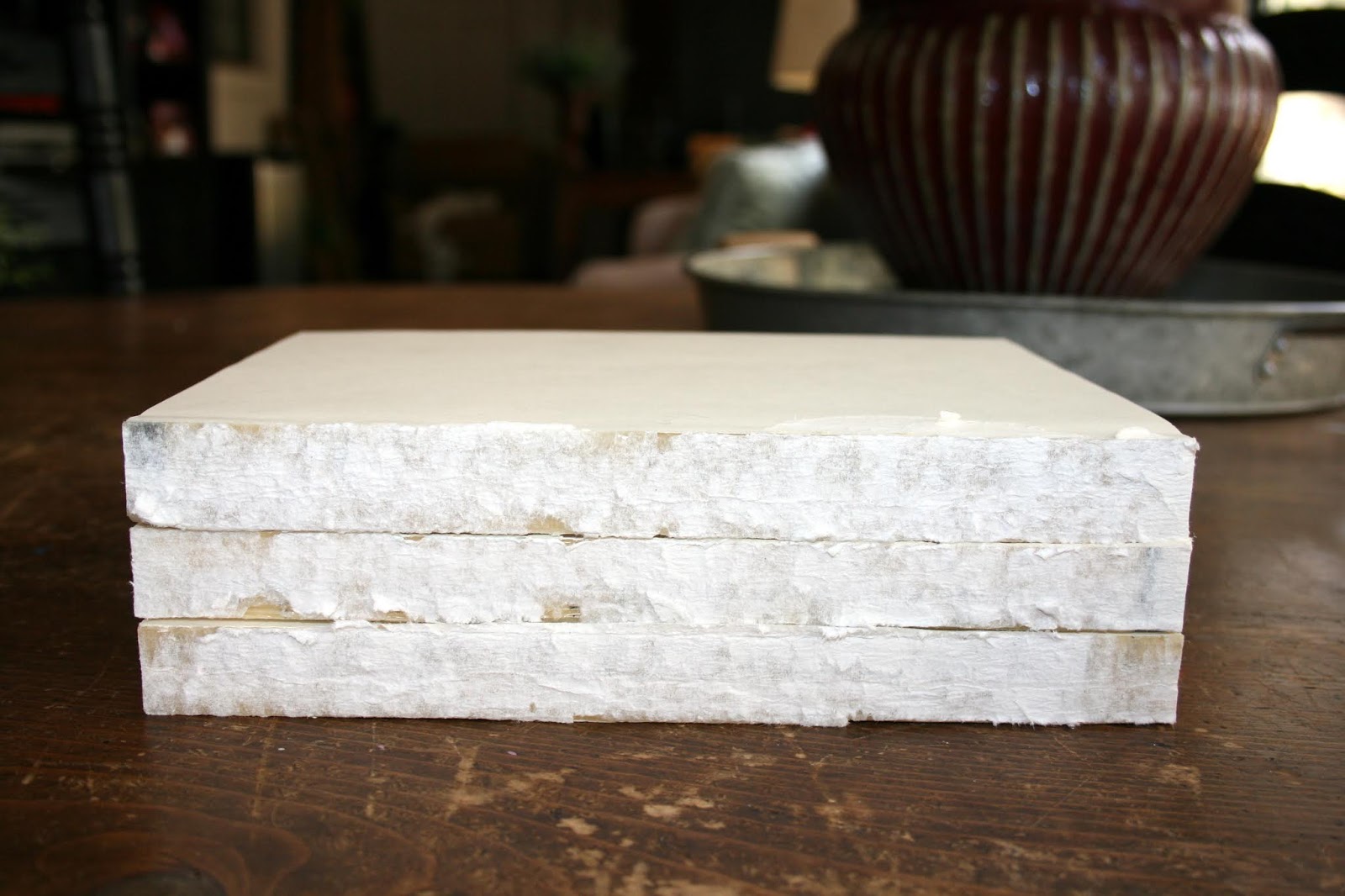 The first order of business is to rip off the covers. At this point, you can paint everything but I like the shabby look of the raw, ripped binding.
