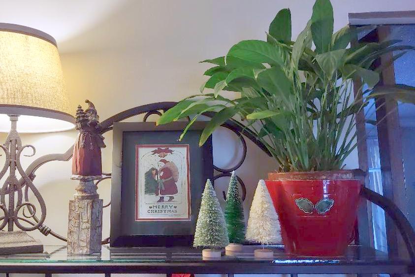 For some reason the top shelf on the baker's rack didn't look good to me so when I found a few more cute bottle brush trees, I stuck them up there and it is oh so much better. Lol
